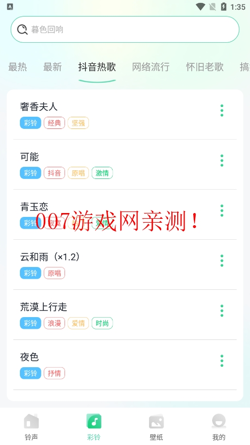 手机铃声多app是专为智能手机用户设计的专业铃声应用,拥有诸多亮点功能。首先,软件提供了海量高质量的铃声资源,涵盖流行音乐、经典歌曲、自然音效、影视原声、搞笑片段等数十种分类,满足各类用户的个性化需求。无论你是追求时尚潮流的年轻人,还是喜欢宁静舒适的中年用户,都能在这里找到适合自己的铃声。