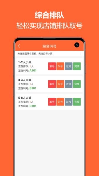 商家可快速为顾客安排取号,系统自动打印包含详细排队信息的小票,操作简单便捷。