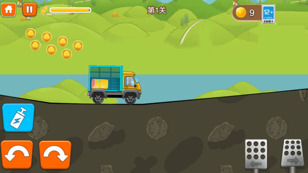 左右按钮控制方向,右下为油门与刹车,保持平衡避免翻车是通关的关键操作技巧。建议新手先从简单难度开始练习,逐步掌握各项操作要领。