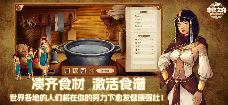《丰收之路》是一款融合航海探索、经营策略与全球饮食文化的沉浸式模拟游戏。在这款游戏中,玩家将化身"丰收之神",肩负着传播美食文化、提升世界饮食健康的使命。游戏以精美的画面和丰富的玩法为核心,带领玩家踏上一场环球美食之旅。