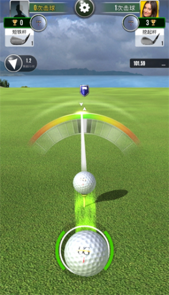 推球技巧:推球时需要拖动预览线精确对准球洞,同时注意地形起伏带来的影响。游戏提供了详细的推球教程,玩家可以通过反复练习来提升进洞率。记住保持稳定的手势是成功推球的关键。