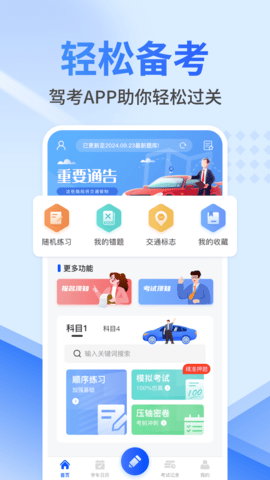 驾证一点通最新是一款专为考驾照学员设计的智能学习平台,致力于帮助用户高效备考并顺利通过驾照考试。该平台全面覆盖小车、货车、客车和摩托车四种车型的驾考资料,支持用户根据自身需求灵活选择学习内容。从科目一到科目四,系统提供理论知识点讲解、专项练习以及全真模拟考试功能,实现学练结合的一站式备考体验。平台采用智能算法分析用户学习数据,精准推送薄弱环节练习内容,配合错题本和成绩分析功能,让学员随时掌握学习进度。无论是新手入门还是考前冲刺,驾证一点通都能提供个性化的学习方案,帮助用户利用碎片时间提升驾驶理论水平和应试能力。