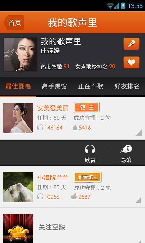 唱歌踢馆:刺激的1v多挑战模式,你可以选择热门歌曲发起挑战,成功占领歌曲地盘将获得专属称号。排行榜功能让你随时查看自己的排名,向K歌之王的宝座发起冲击。