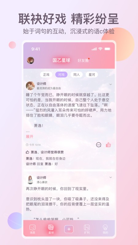 次元星app官方免费正版是一款专为二次元爱好者打造的社交娱乐平台,在这里你可以尽情释放想象力与创造力。无论是游戏迷、追星族还是小说控,都能找到属于自己的兴趣圈层。平台提供多样化的角色扮演功能,让你可以自由选择身份,与志同道合的伙伴展开互动。独特的扩列匹配系统让你轻松结识新朋友,丰富的社区活动更带来无限欢乐,让每一次社交都充满惊喜与乐趣!