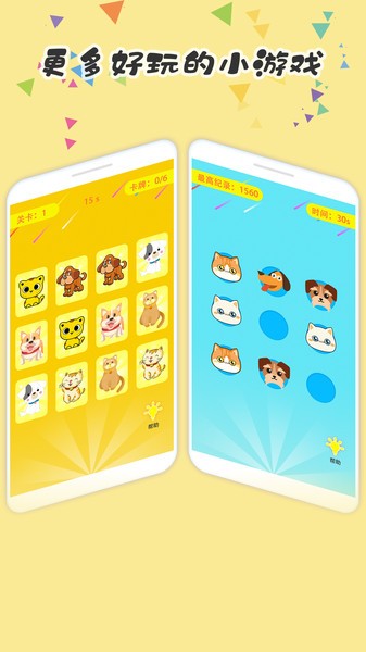 狗狗游戏乐园采用精美的卡通画风,包含接飞盘、找骨头等经典互动游戏,还能记录宠物的游戏数据,观察它们的运动能力和反应速度变化。
