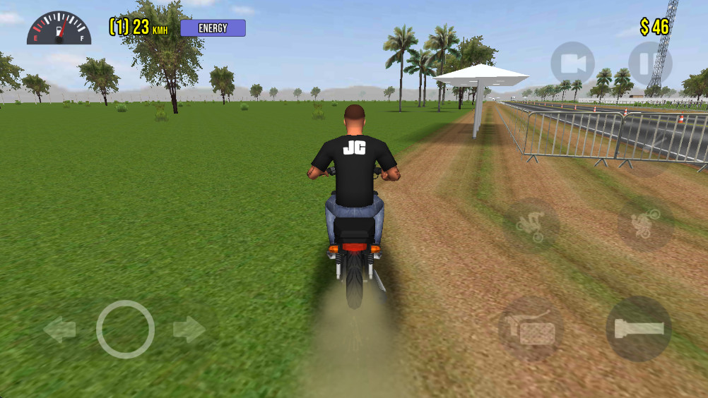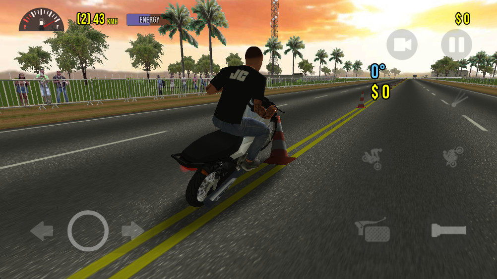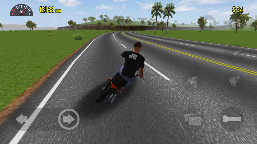 屏幕右边第一个动作是摩托车头翘起来,和驾驶一起按就是车头翘起前进的特技。这个特技动作不仅看起来炫酷,在特定赛道上还能帮助玩家避开障碍物或获得加速优势。