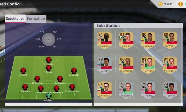 球队管理功能十分完善,玩家可以在赛前调整球衣、换人和阵型。游戏提供主客场两套最新球衣,球员数据详实,包括GK(守门员)、DF(后卫)、MF(中场)、FW(前锋)等位置信息。阵型系统丰富多样,支持4-4-2、4-3-3、5-3-2等多种经典阵型,玩家还可以根据比赛需要调整阵型的攻击性。