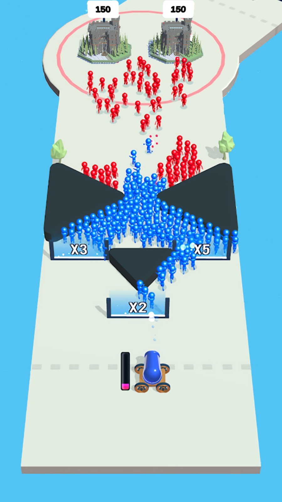 初次进入游戏时,系统会引导玩家点击开始战斗按钮,自动进入新手训练场。在这里,游戏会详细展示基础操作和战斗规则,帮助新手快速上手。玩家需要通过手指滑动来控制大炮的移动方向,点击发射键投掷角色,在这个过程中要特别注意调整发射角度,确保炮弹的飞行轨迹能够准确覆盖目标区域。一个重要的技巧是,成功让炮弹穿越友方人群可以获得额外的兵力加成,每命中一个友方单位都能为你的队伍增添新的作战成员。在实战中,建议集中火力攻击敌方营地的核心建筑,当所有防御设施被摧毁且守军被击败后,就能顺利赢得关卡胜利。