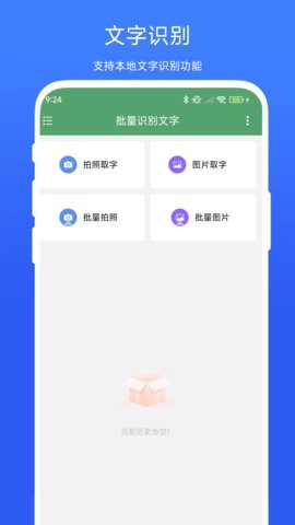 批量识别:强大的批量识别功能,满足同时识别多个图片文字的需求,提取文字内容更高效。一次性处理多张图片,节省大量重复操作的时间,特别适合处理大量文档的用户。