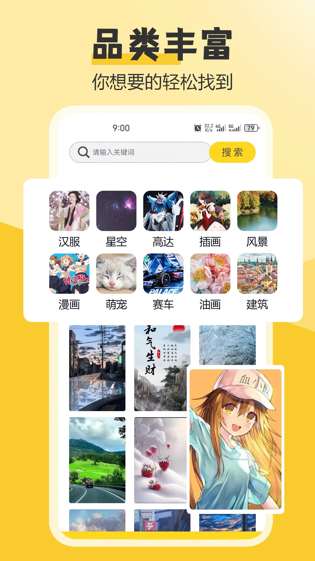 是一款精选桌面壁纸应用软件,品类丰富,动漫游戏,风景动物,美女明星,你想要的都可以轻松找到,还包含相册功能等你来体验,快来下载体验吧