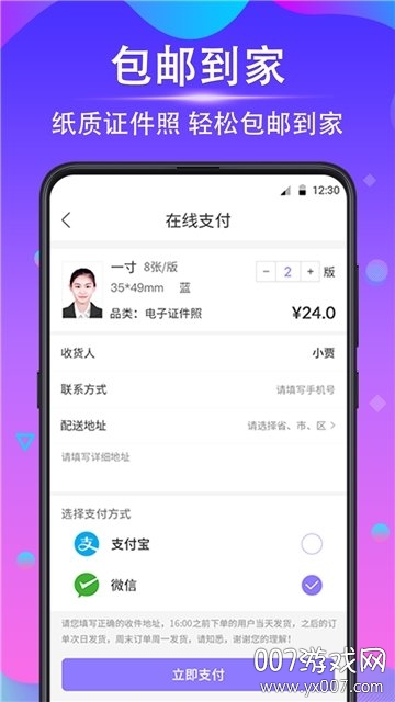 【便捷打印,全国包邮到家】时光证件照专业版提供专业的照片打印服务,用户只需在手机上完成拍摄和编辑,即可选择打印服务。我们承诺全国范围内包邮送达,无论您身处何地,都能在最短时间内收到高质量的纸质证件照。这项贴心的服务特别适合急需证件照但又没时间外出的用户。