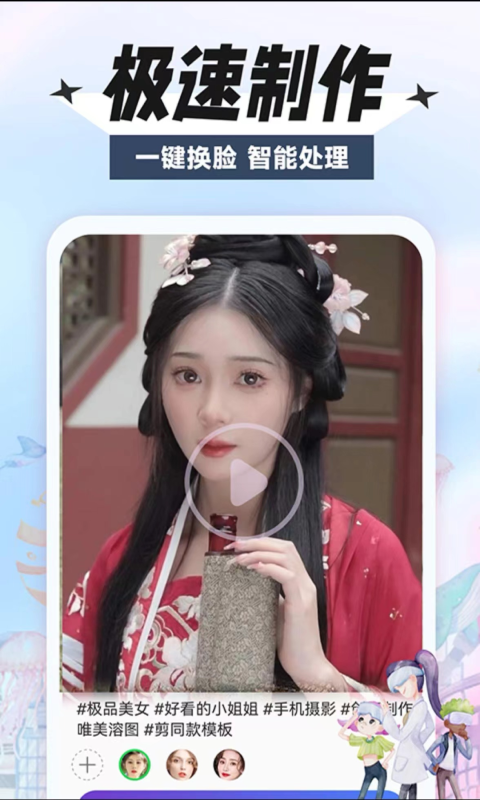 智能五官识别技术确保换脸效果自然流畅,一键生成创意视频。丰富的素材库随时更新,让你轻松演绎不同角色,成为镜头下的主角。从照片编辑到视频制作,全方位满足你的创意需求。