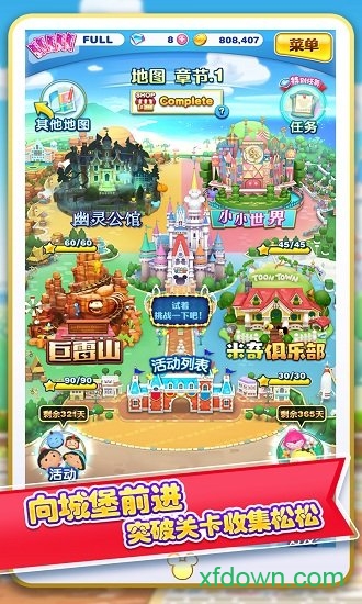 在这里和迪士尼的明星们一起踏上奇遇之旅,享受哟去的消除挑战;