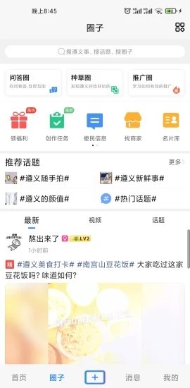 遵义圈APP是遵义人的线上生活社区,通过创新的社交模式,让本地居民可以自由分享美食、娱乐、购物等生活体验。平台支持文字、图片、视频等多种内容形式,记录遵义人的美好生活瞬间,传播正能量,打造真正属于遵义人的生活分享平台。