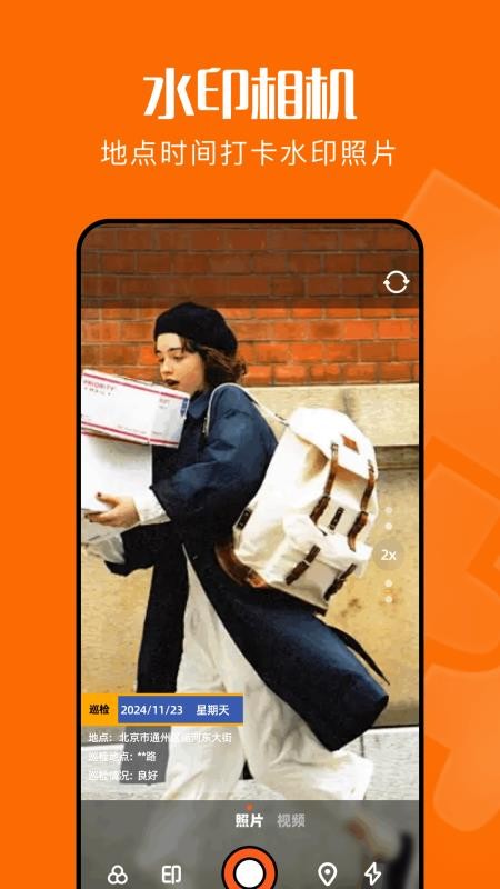 之后选择首页界面左下角的"印"字样图标按键,就可以为拍摄照片添加各种类型水印模板了