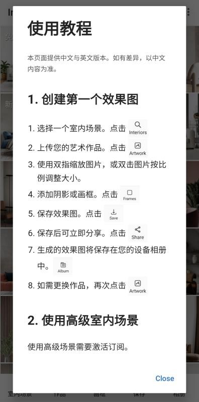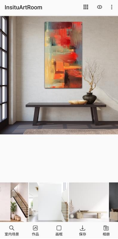 InsituArtRoom是一款专业的墙面艺术展示工具,让艺术家能够将作品真实呈现于各类墙面上。通过高清模拟技术,用户可以直观预览艺术品在不同环境中的展示效果,便于优化调整,打造独特视觉体验。软件支持室内外多种场景展示,作品可随时下载保存,方便随时查看实际效果。免费版提供丰富画框选择,帮助用户快速了解不同风格的展示效果。