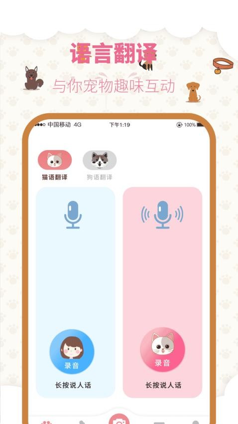 支持所有猫咪、狗狗品种的语言翻译,并有多种类型声音可供挑选