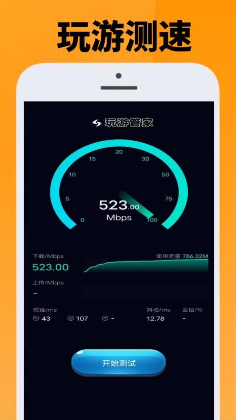 还可以在线对玩游戏时的速度和流量进行测试,轻松测试掌握。