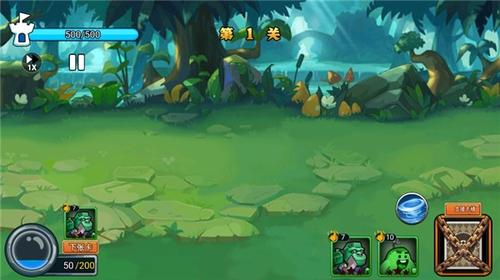 进入第一关后,注意左下角显示的能量值为45200,合理分配资源使用,通过右侧卡牌召唤战斗单位投入战场。