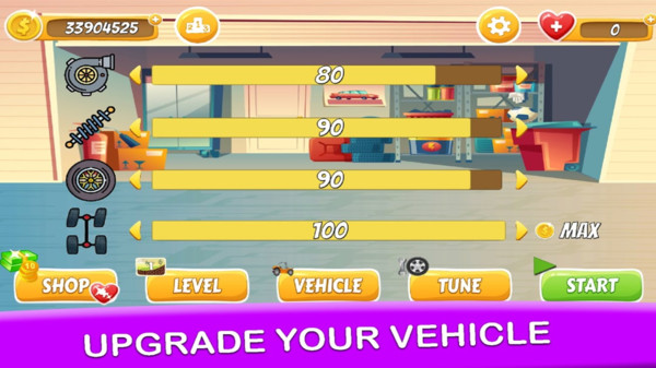 通过车辆升级解锁新场景,使用特殊道具延长行驶距离,探索更多隐藏赛道。