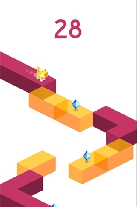 基础操作需要观察小球移动方向后横向滑动屏幕,在0.3秒内完成赛道方块的对位衔接。面对较长断裂带时,可分三次滑动不同方块形成阶梯式过渡。收集钻石时需要优先填补靠近收集物的赛道段,部分钻石需要制造弹跳平台才能获取。特殊关卡要求在45秒内完成三段复杂赛道的拼接,成功后可获得双倍钻石奖励及专属纪念皮肤。