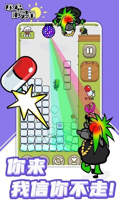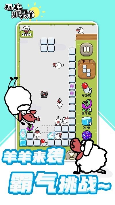 画面中央会出现可爱的绵羊角色,玩家需要控制下落的方块进行精准撞击。