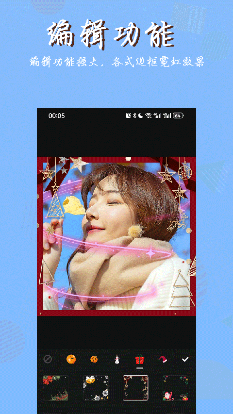 照片编辑器提供了许多用于装饰照片和照片拼贴的工具和材料:贴纸,文字,马赛克,绘画等。