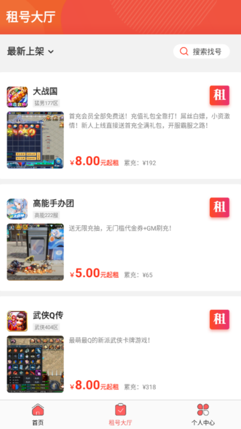 输入游戏名称即可智能匹配,实时显示账号租赁价格和详细信息;