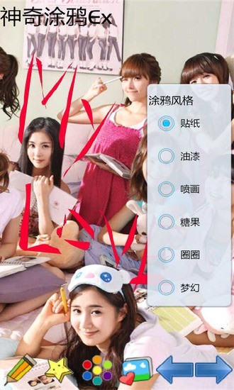 独创的神奇涂鸦画笔,具有多种神奇效果,贴纸,油漆,喷画,糖果,圈圈,梦幻等,绝对能满足想象力洋溢的你