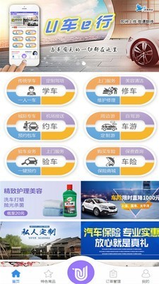 U车e行app是一款综合的跨界营销app.驾校学车、修车养车、出门约车、出行旅游、车辆保险,为您提供便捷生活!