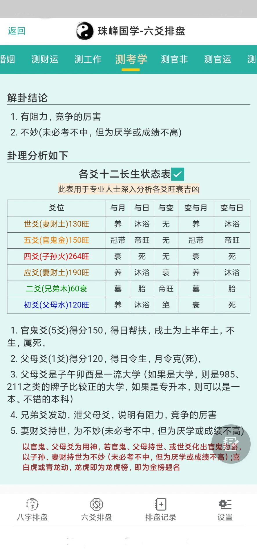 珠峰国学八字六爻软件不仅仅是一款优秀、强大的排盘工具,而且还自动给出了六爻卦和八字的结论、一生运势、祸福吉凶,都以通俗的语言断出了结论;更重要的是每一件事的结论,还都配上了详尽的卦理,使您不但能知然,还能知其所以然。此款软件,是易学爱好者的福音,在知道断卦结论的同时,还学习了卦理,使自己亲自己起的每一个卦,都成了生动而贴切的实战案例。自动给出准确的断卦结论(准确预测),并且配上详细的卦理,是珠峰国学软件的核心竞争力!