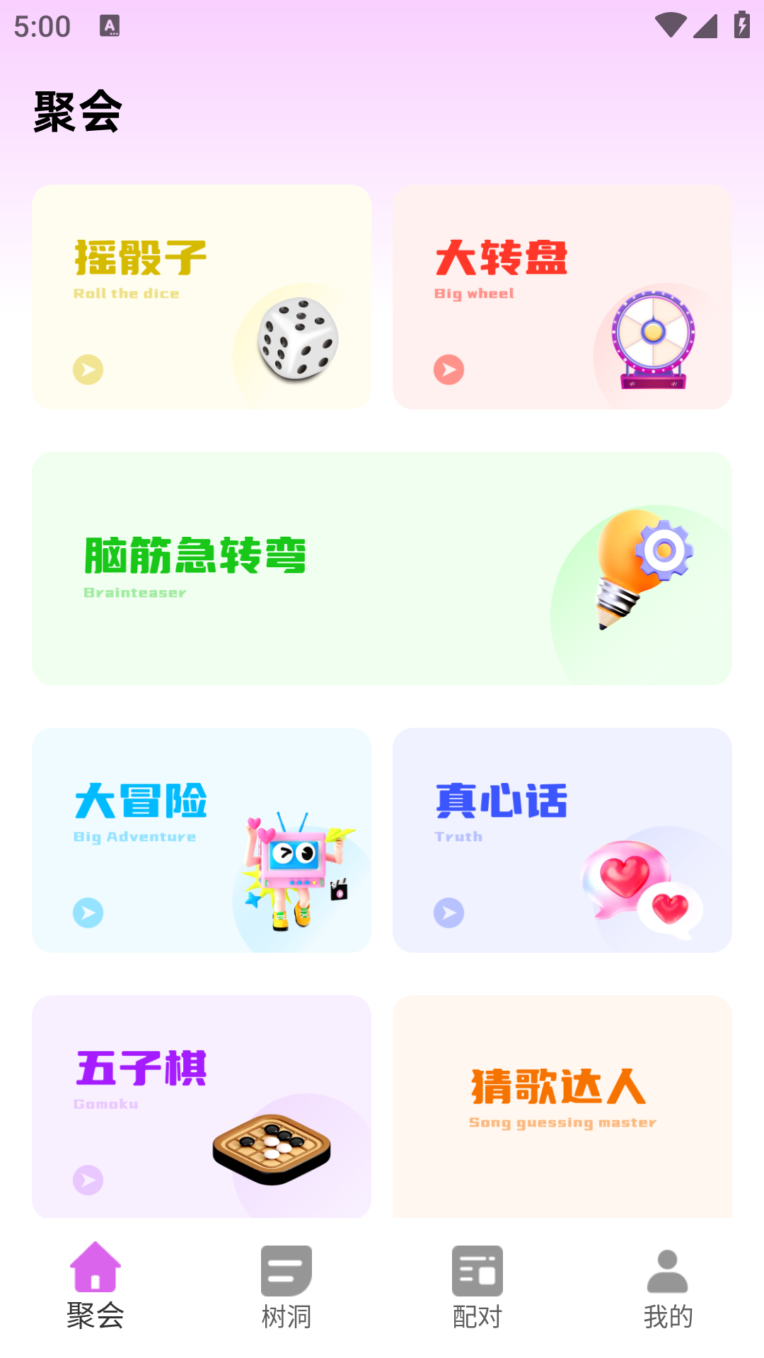 一站式解决各类聚会娱乐需求,告别下载多个APP的烦恼。即开即玩的便捷设计让聚会游戏零门槛。灵活适配各种社交场景,线上线下都能玩得尽兴。持续更新的内容库确保每次使用都有新鲜体验。轻松活泼的界面设计让用户享受无压力的娱乐体验。