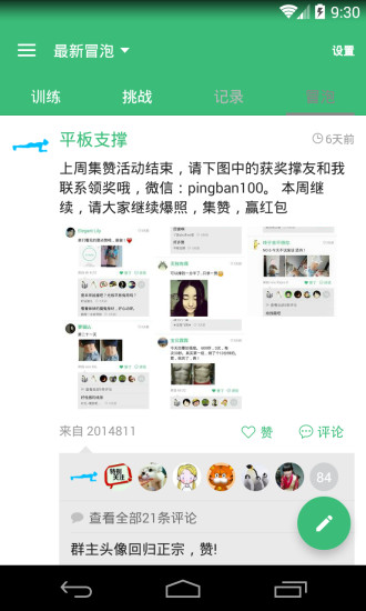 挑战模块,和全网的平板支撑(plank)高手一起来挑战吧。