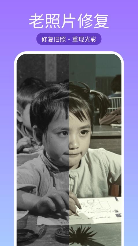 智能照片修复功能,在应用中一键修复模糊和低分辨率的照片,简单方便;