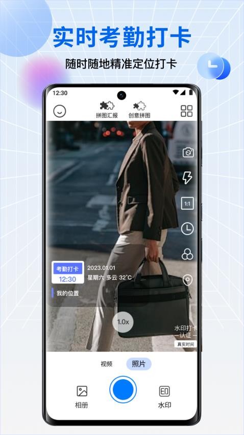 时间拍照APP是一款专业实用的水印相机软件,其拍照记录功能精准可靠。软件采用先进的防篡改技术,确保添加的时间和地点水印无法被修改,实现精准的时间地点校准。无论是工作记录还是日常拍照,这款应用都能提供专业的水印解决方案。