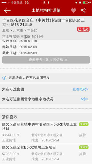 应用提供详尽的土地成交数据分析功能。在已成交地块的详情页面,用户可以查阅拿地企业的详细介绍、在该地区的拿地历史记录以及开发实力评估。同时还能跟踪该地块后续的项目开发进度,包括规划审批、建设进度、预售情况等重要信息,帮助用户全面了解地块的开发潜力。
