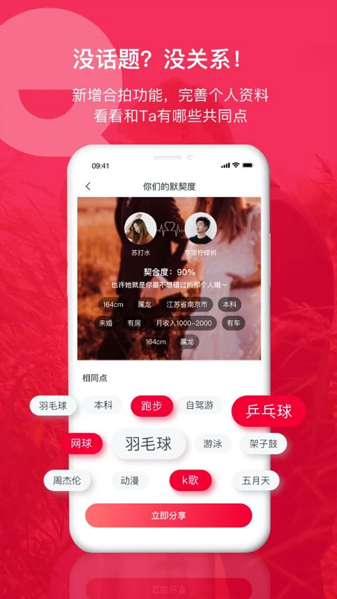 修复已知问题,优化用户体验。重点改进了活动报名系统的稳定性,解决部分用户反馈的闪退问题;新增"心动轨迹"功能,可查看与匹配对象的互动记录;优化消息推送机制,降低30%无效通知。