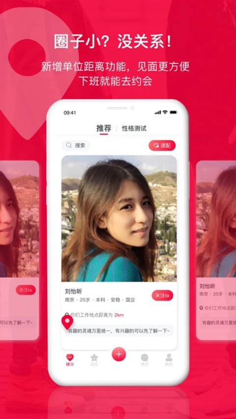 提出单位认证、同事认证等系列认证体系,增强了单身男女之间的互信。独创"职场信用分"评估机制,根据认证完整度、活动履约率等维度给予评分,高分用户可解锁专属权益。