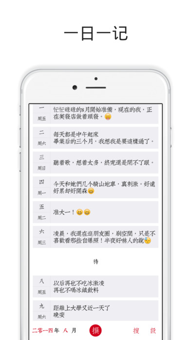 隐私-采用TouchID和密码双重保护机制,确保您的私人日记绝对安全。所有数据都经过加密存储,只有您本人才能查看。