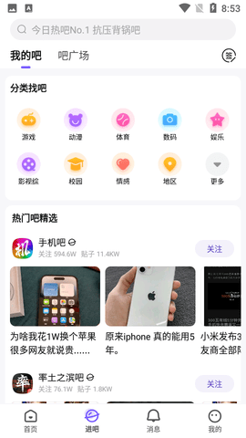 首次使用时,系统会根据你的地理位置和兴趣推荐热门贴吧。你也可以通过分类浏览或热门榜单发现新的兴趣社区。收藏常用贴吧后,下次访问会更加便捷。