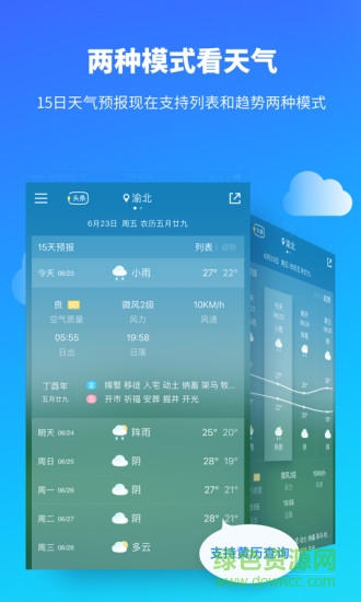 *完备的天气信息:提供15日长期预报和24小时逐时预报,涵盖空气质量、污染指数、PM2.5、风力风向、湿度温度等全方位数据。特别设计的日出日落时间提醒、气压变化趋势图等功能,让您对天气变化了如指掌。智能生活指数系统会根据实时天气为您提供紫外线防护、钓鱼时机、穿衣搭配等20多项专业建议。