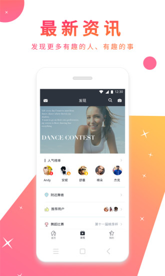 舞蹈圈是国内规模最大的泛舞蹈文化娱乐垂直社区,覆盖了从街舞到芭蕾舞等数十种舞蹈类型。平台以UGC社区为核心,提供最专业的舞蹈教学资源、最有趣的图片短视频内容、最便捷的社交功能。用户可以通过内置的美图美拍功能分享舞蹈动态,参与即时约舞和群聊,还能参加线上线下舞蹈派对和比赛活动。在这里,你可以轻松找到附近颜值最高的舞者,发现最有趣的舞蹈内容,与全球舞者建立联系,共同提升舞蹈技艺。