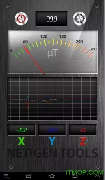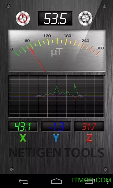 启动此应用程序在移动设备上,并移动它。你会看到屏幕上显示的磁场水平不断波动。彩色线代表三个维度和在顶部的数字表示的磁场水平(EMF)值。该图表将增加,器件会震动,使声音宣布金属接近。在设置中你可以改变的振动和声音效果的敏感性。建议初次使用时先进行校准操作,将手机在无金属环境中缓慢旋转360度,这样可以获得更准确的探测结果。探测时保持手机平稳移动,当发现异常磁场波动时,可以放慢移动速度进行精确定位。