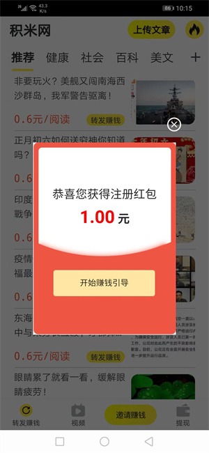 积米网APP是一款集新闻阅读与收益获取于一体的创新应用,为用户提供海量优质视频及文章资源。其核心亮点在于通过简单的转发分享操作即可获得可观收益,单次阅读收益高达0.6元,配合完善的提现机制让赚钱更轻松。平台不仅设有丰富的日常福利活动,还支持用户自主导入内容并发展下线获得额外奖励。无论是想利用碎片时间赚零花钱,还是寻找长期稳定的副业渠道,积米网都能满足不同用户的需求。