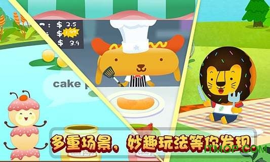 1喂多纳吃甜甜圈:通过拖拽食物到狮子嘴边的动作,既锻炼手眼协调能力,又能听到标准美式发音"Donut~Yummy!"的趣味反馈。2跟果冻象玩吹泡泡:触碰屏幕制造七彩泡泡的过程,会随机弹出jelly/jello等变体单词。3帮巧克力羊驼串项链:需要按"白-黑-白"的规律选择巧克力豆,培养基础逻辑思维。4食物迷宫:将所学单词融入路径选择,走错方向时汉堡猫会跳出来提示"Try again!"所有游戏都设有难度分级,可随年龄增长解锁新玩法。