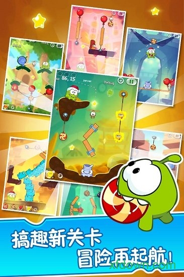 1.切割绳子:通过精准的触控操作切割各种材质和长度的绳子,利用物理特性让糖果顺利到达OmNom口中。