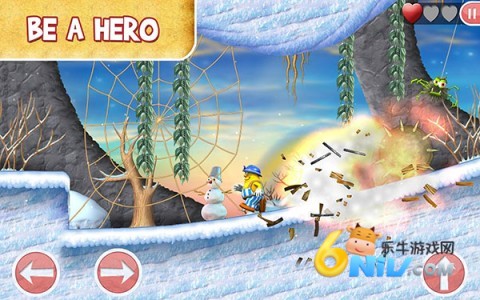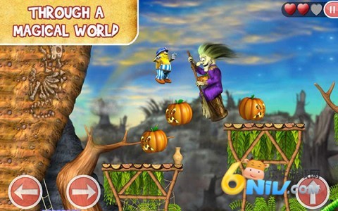 操作方式直观简单:游戏采用经典的虚拟按键控制,左侧方向键控制角色移动,右侧按键负责跳跃动作。双击跳跃键可以实现二段跳,帮助玩家跨越更远的距离。杰克拥有三颗爱心作为生命值,受到怪物攻击时会消耗爱心,需要谨慎应对各种敌人。