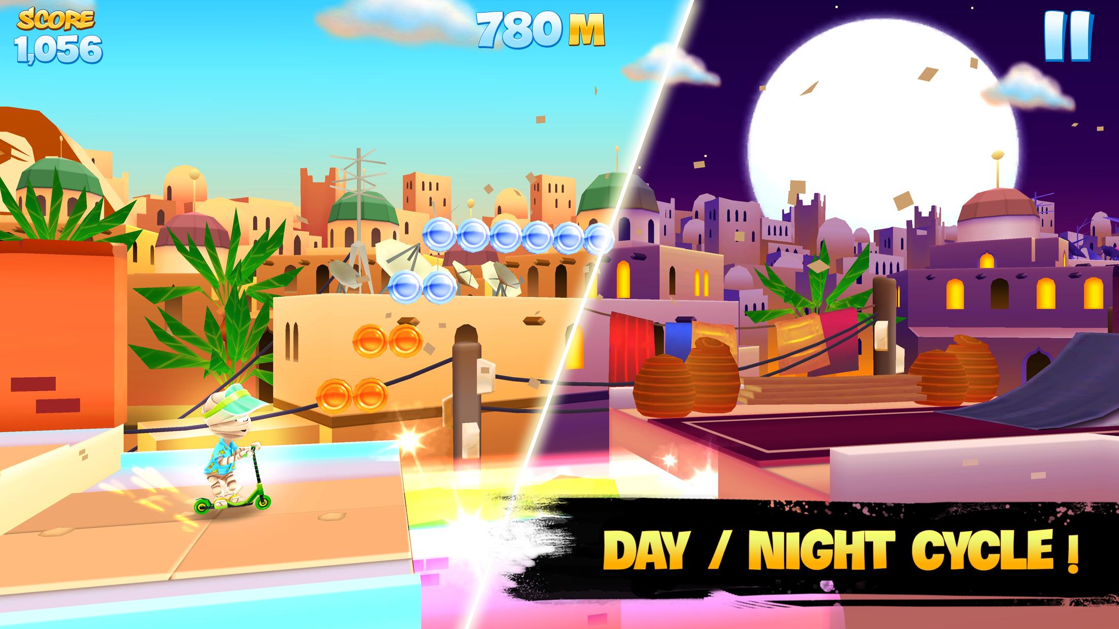 《天空滑行者》(SkylineSkaters)将带你体验前所未有的屋顶滑板冒险。游戏提供四位风格迥异的角色供你选择,不仅有帅气的小伙和可爱的萌妹,还有一只憨态可掬的熊宝宝。每位角色都拥有独特的滑行技巧和动作特效。游戏场景设置在城市的屋顶之上,你需要躲避各种障碍物,如热水管道、楼房间隙等,同时收集金币来升级装备。特别要注意的是,天空中不时会出现巡逻的直升机,一旦被抓住就要付出金币代价才能继续游戏。游戏还设有丰富的成就系统,完成特定挑战还能解锁隐藏角色和特殊滑板皮肤。
