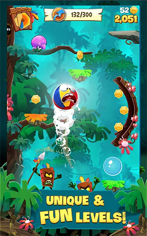 包括捕捉蝴蝶、玩提基和拯救你的傻瓜蹦蹦乐同伴,使用超级连击技能。这些特色玩法为游戏增添了更多趣味元素,连击系统奖励玩家的精准操作,鼓励创造更高的分数记录。