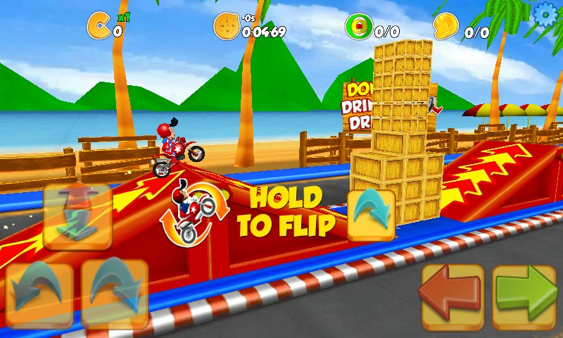 - 讲求技巧,完美的特技展现:游戏包含20种专业摩托特技动作,从基础的前轮离地到高难度的后空翻三周半。通过精确的触控操作和重力感应控制,完成连击特技可获得额外分数加成。